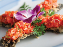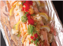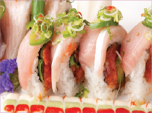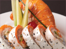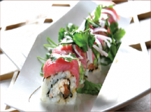 Salmon and lemon on crabmeat, avocado, spicy tuna with chef's special sauce