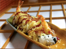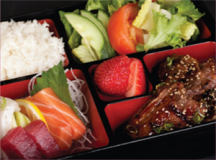 Chicken or salmon teriyaki or 3pcs shrimp tempura, 2 pcs gyoza & 2 pcs california roll