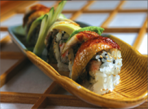 Tuna, salmon, shrimp tempura, crab, masago, green onion, cucumber, chef's special sauce