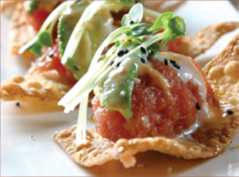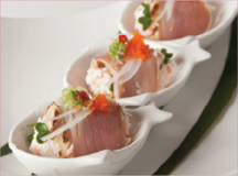 Blue Fin Tuna (6 pcs)_ Truffle Oil, Sesame Dressing, Fish Egg, Radish Sprout